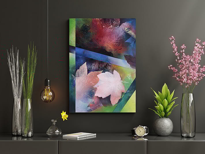 I am fascinated by light and its effect on colour. I use mixed-media (ink and acrylic) to create luminous layers of colour and textured patterning, giving the impression of light filtering through natural forms.