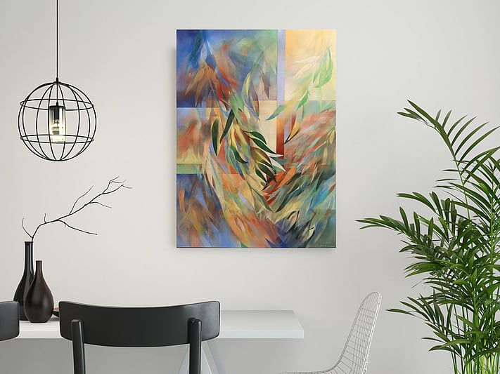 I am fascinated by light and its effect on colour. I use mixed-media (ink and acrylic) to create luminous layers of colour and textured patterning, giving the impression of light filtering through natural forms.